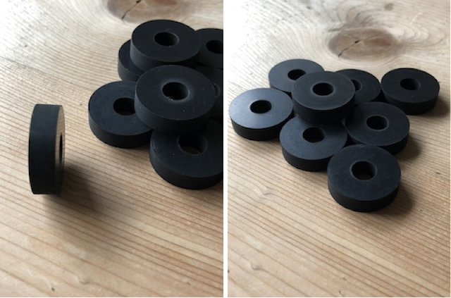 ナットの飛び出しを緩衝するための下(↓)のような半透明の樹脂製、