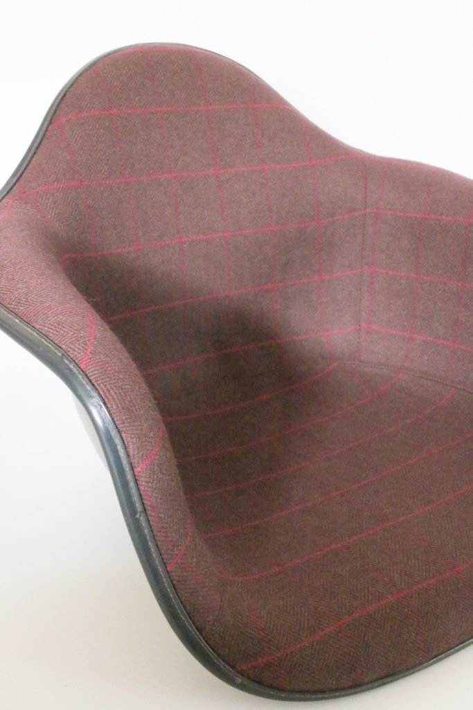 アームシェルチェアをチェック柄の生地で張替えです。