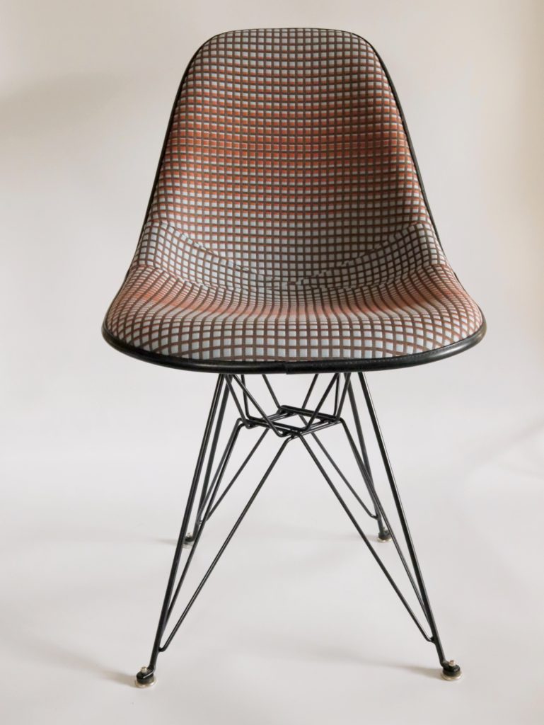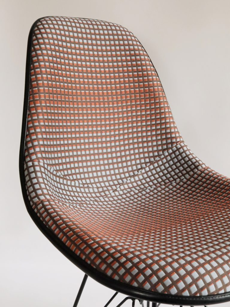 数年前に張替えのご依頼をいただきましたサイドシェルチェアをmaharamの別の生地で再度張替えのご依頼をいただきました。