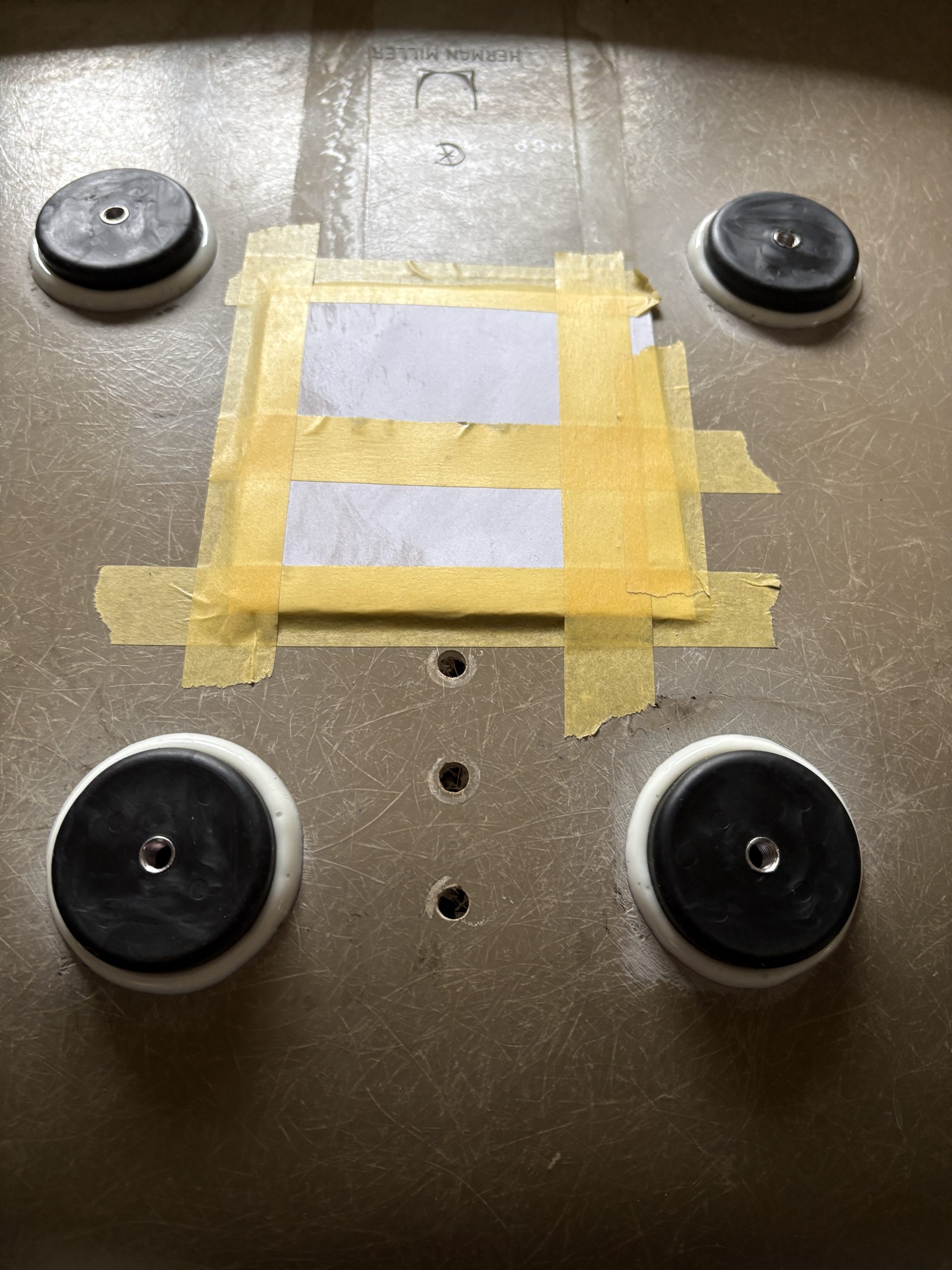 ビンテージのシェルチェアで時々貼られているのを見かけるパテントシール。このシールはシール自体が劣化していたり剥がれかかっていたりしてショックマウント修理でお預かりした際にできるだけダメージが起きないように保護して作業を行っています。それでも極稀に剥がれてしまうこともあるのですが。。その際は何卒ご了承下さい。