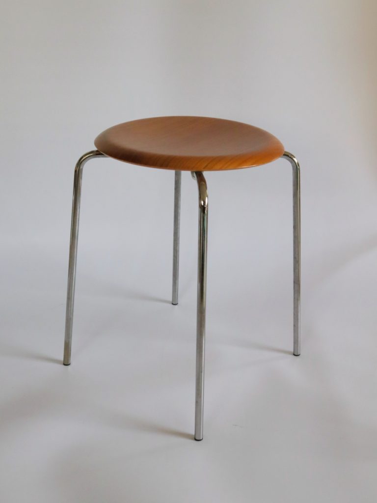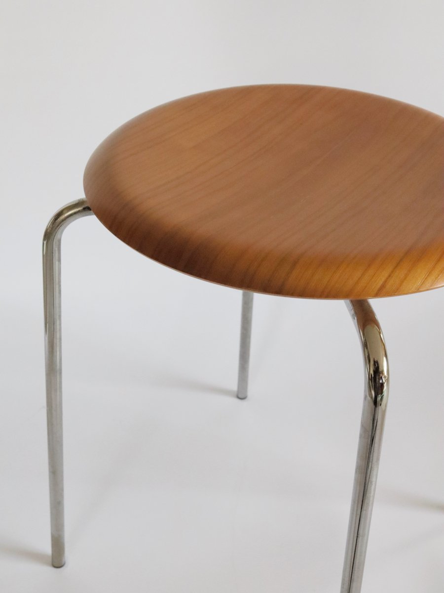 Fritz Hansenのドットスツール座面修理のご依頼でした。脚と座面の取り付け仕様はセブンチェアやアントチェアとほぼ同じで樹脂パーツが座面に接着されて脚が取り付けされていました。この修理も樹脂パーツを木製パーツに変更して修理を行いましたのでオリジナルの状態より、より強固になっていると思います。