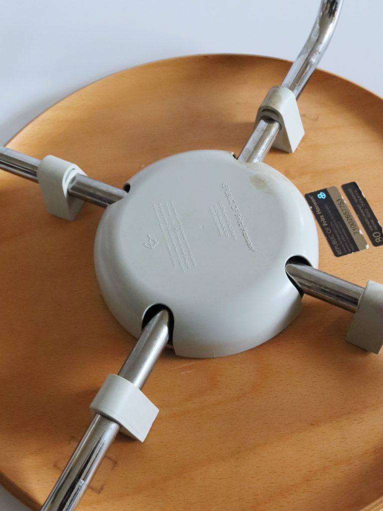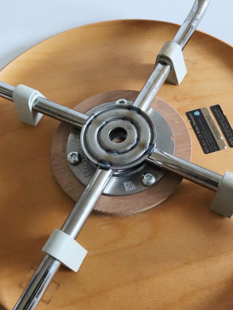 丸い金属プレートのネジ穴仕様がセブンチェアやアントチェアと少し異なっているのが不思議でした。