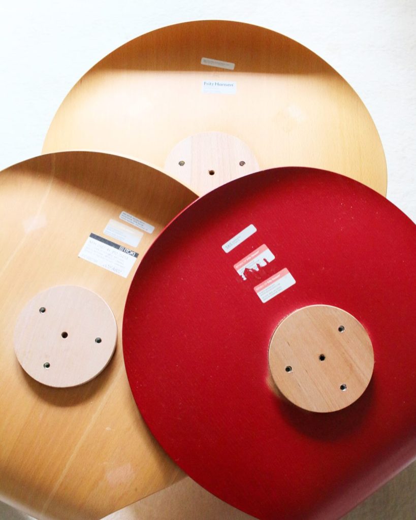 セブンチェア、アントチェアの座面修理、イームズシェルチェア張替えなど、